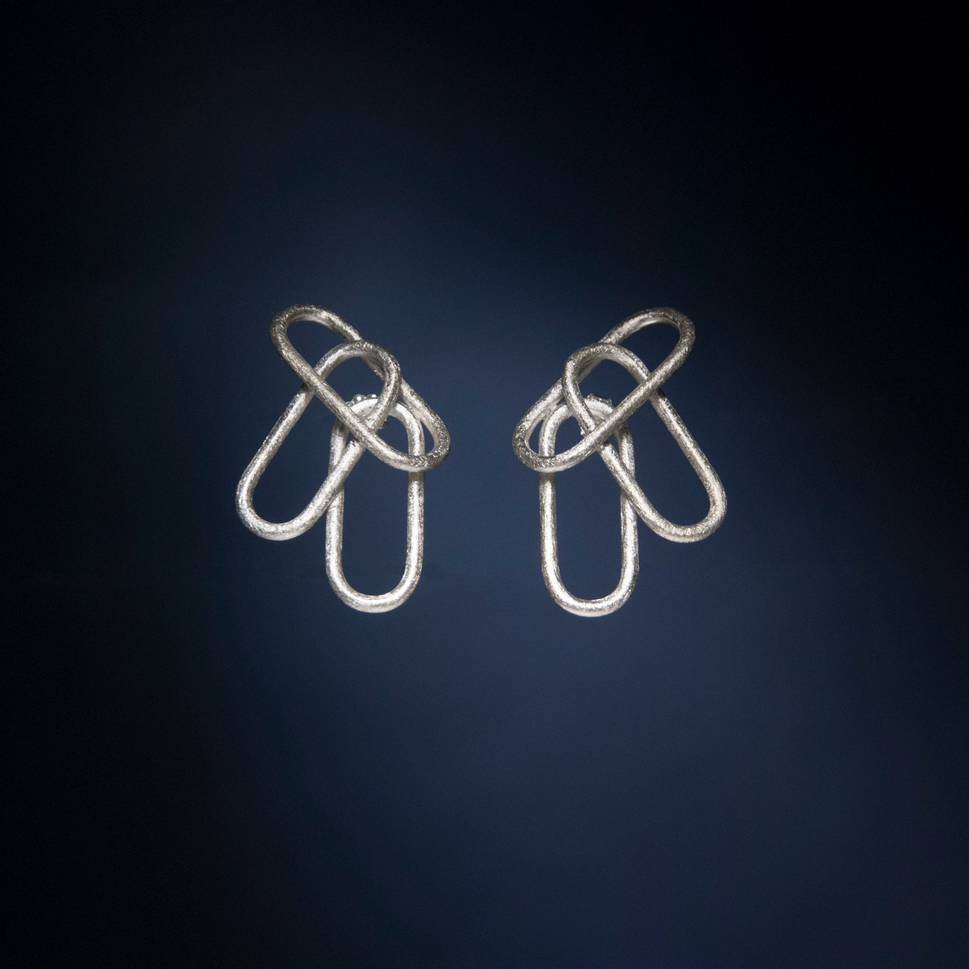 Dynamic earrings that play with the repetition and movement of structures so as to achieve a composition. Designed to catch the light in different angels, this earrings will give the illusion of floating in the ear.