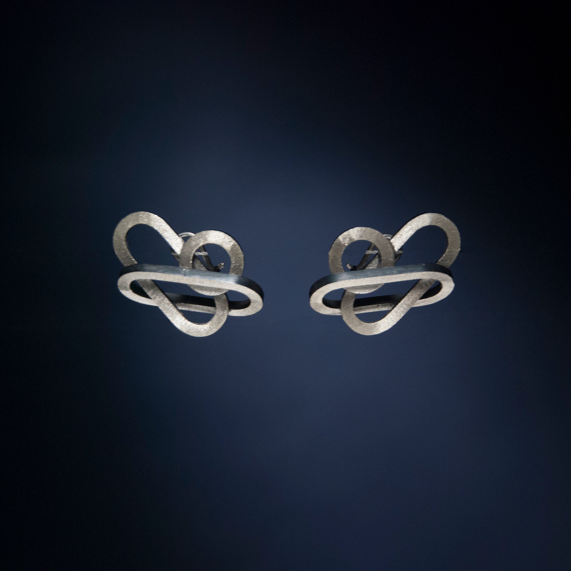 Dynamic earrings that play with the repetition and movement of structures so as to achieve a composition. Designed to catch the light in different angels, this earrings will give the illusion of floating in the ear.